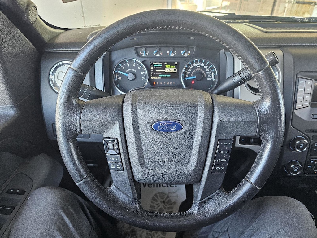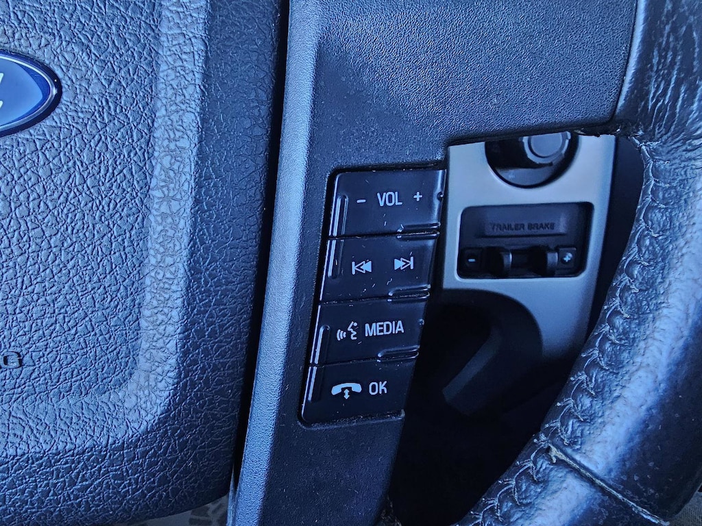 - Includes vehicle with standard equipment, XLT Convenience Package with power heated exterior mirrors with integrated turn signals, self-dimming rearview mirror and driver side exterior mirror, 6-way power drivers seat, power adjustable pedals, SYNC with MyFord, 4.2 inch LCD Productivity Screen in instrument cluster, 4.2 inch LCD audio and climate control screen in center-stack, leather-wrapped steering wheel, and 5-way steering wheel controls, Trailer Tow Package with Class IV trailer hitch receiver, 7-pin wiring harness, upgraded radiator, upgraded auxiliary transmission oil cooler, and 6-speed SelectShift transmission, trailer brake controller, SIRIUS satellite radio, XLT Plus Package with reverse sensing system and power sliding rear window with defrost and privacy tint, XLT Chrome Package with 18 inch chrome clad aluminum wheels, P275/65R18 OWL all-terrain tires, chrome front tow hooks, chrome bar style grille insert with silver mesh, chrome door handles with black bezels, 5 inch chrome tubular running boards, and chrome exhaust tip, and rear rview camera.