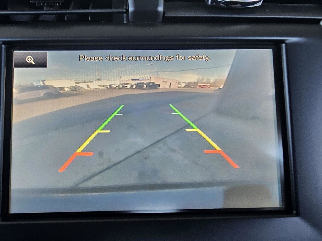 - The vehicle is equipped with a camera that displays an image of the area behind the vehicle on an interior display.