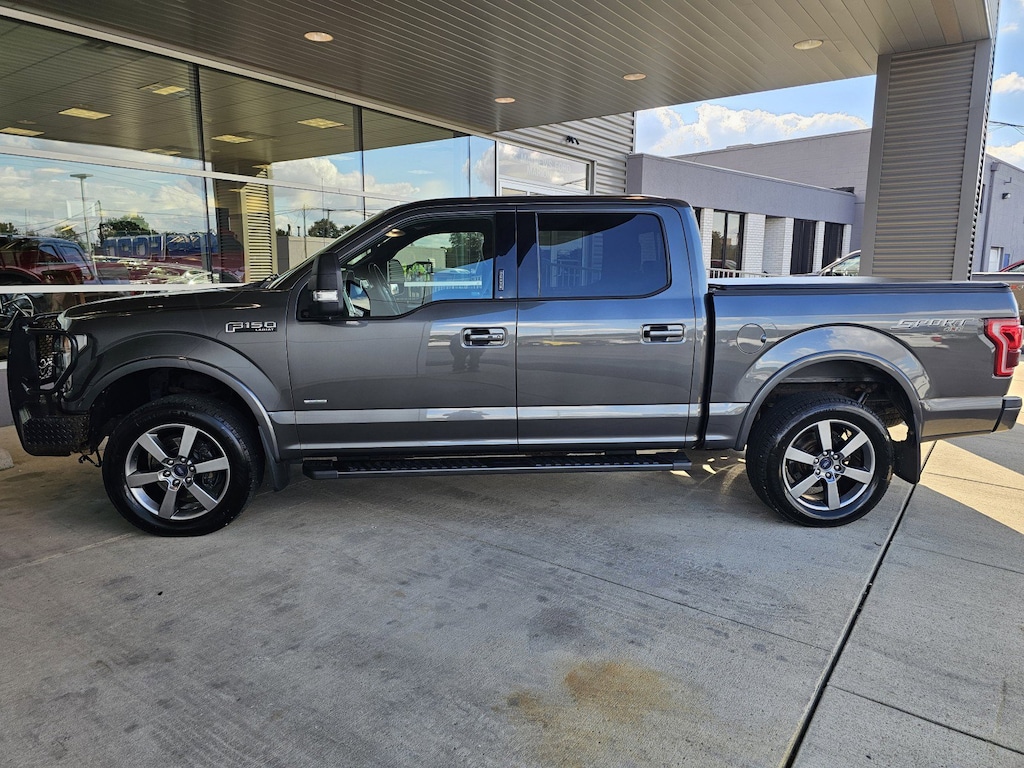 Mathews Ford Marion is excited to offer this 2015 Ford F-150 Lariat. Pull up in the vehicle and the valet will want to parked on the front row. This Ford F-150 Lariat is the vehicle others dream to own. Don't miss your chance to make it your new ride. When Ford created this vehicle with 4 wheel drive, they immediately enhanced the performance ability. Easily switch between two and four wheel drive to take advantage of the improved traction. One of the best things about this Ford F-150 is that it has low, low mileage. It's ready for you to truly break it in. Added comfort with contemporary style is the leather interior to heighten the quality and craftsmanship for the Ford F-150 Lariat. More information about the 2015 Ford F-150: The F-150 might be the most important vehicle made by Ford. It continues to be one of their top selling vehicles, encouraging Ford to put their best foot forward with the 2015 model. The F-150 competes with the Dodge Ram, the Chevrolet Silverado and the GMC Sierra 1500 among others, in the full sized truck category. Ford is clearly pushing their new technology and new ideas with the F-150 offering lots of options not available anywhere else in this class, such as a 360 degree camera and integrated loading ramps stowed in the pickup bed. A smaller, more fuel efficient Ecoboost engine is also available for 2015, which should further improve fuel economy while providing the same kind of horsepower that would normally be delivered by mid-grade V8 engines. At the same time, the F-150 continues to excel at traditional truck tasks, with a best in class towing capacity of 12,200 lbs. when properly equipped. Interesting features of this model are turbocharged engines, available in a huge variety of trims, Towing capacity, rugged durability, and improved gas mileage Mathews Ford Marion has a wide selection of exceptional pre-owned vehicles to choose from, including this 2015 Ford F-150. There's a level of quality and refinement in this Ford F-150 Lariat that you won't find in your average vehicle. With 4WD, you can take this 2015 Ford F-150 Lariat to places roads don't go. It's all about the adventure and getting the most enjoyment out of your new ride. This 2015 Ford F-150 has such low mileage it has been parked more than driven. More information about the 2015 Ford F-150: The F-150 might be the most important vehicle made by Ford. It continues to be one of their top selling vehicles, encouraging Ford to put their best foot forward with the 2015 model. The F-150 competes with the Dodge Ram, the Chevrolet Silverado and the GMC Sierra 1500 among others, in the full sized truck category. Ford is clearly pushing their new technology and new ideas with the F-150 offering lots of options not available anywhere else in this class, such as a 360 degree camera and integrated loading ramps stowed in the pickup bed. A smaller, more fuel efficient Ecoboost engine is also available for 2015, which should further improve fuel economy while providing the same kind of horsepower that would normally be delivered by mid-grade V8 engines. At the same time, the F-150 continues to excel at traditional truck tasks, with a best in class towing capacity of 12,200 lbs. when properly equipped. This model sets itself apart with turbocharged engines, available in a huge variety of trims, Towing capacity, rugged durability, and improved gas mileage