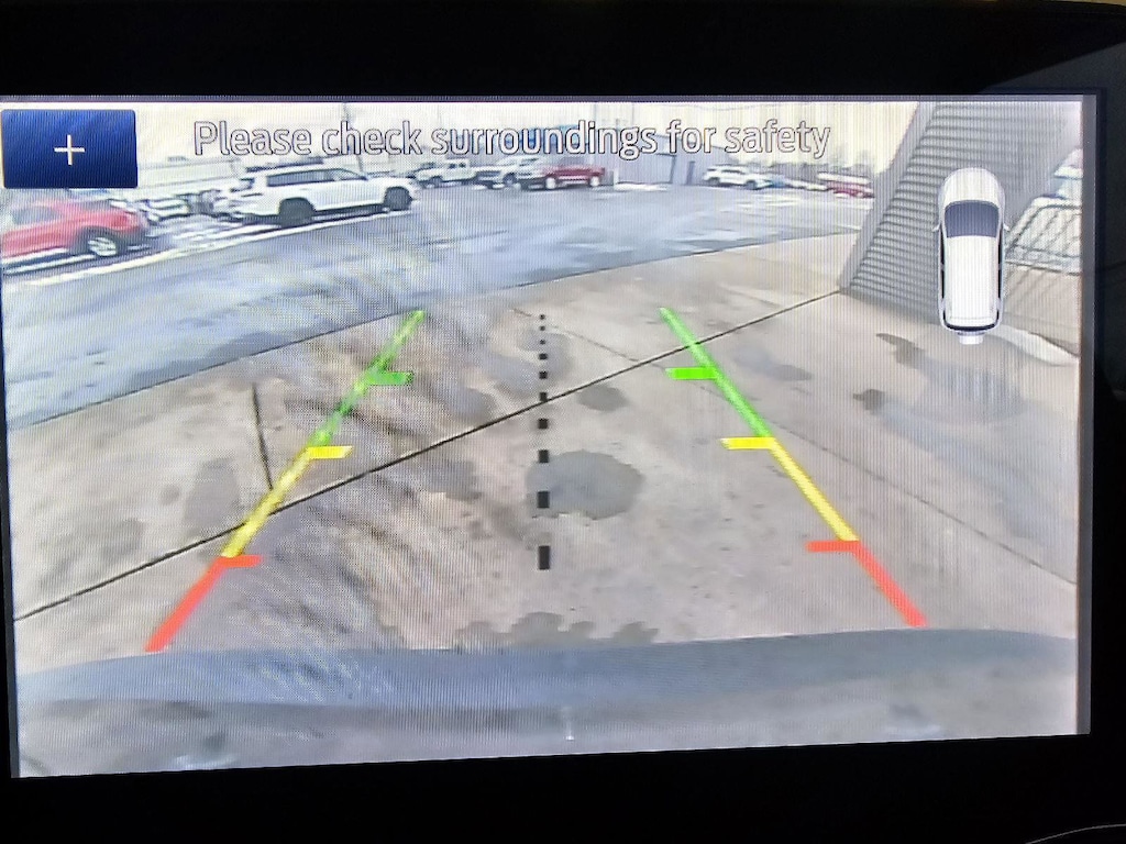 - The vehicle is equipped with a camera that displays an image of the area behind the vehicle on an interior display.